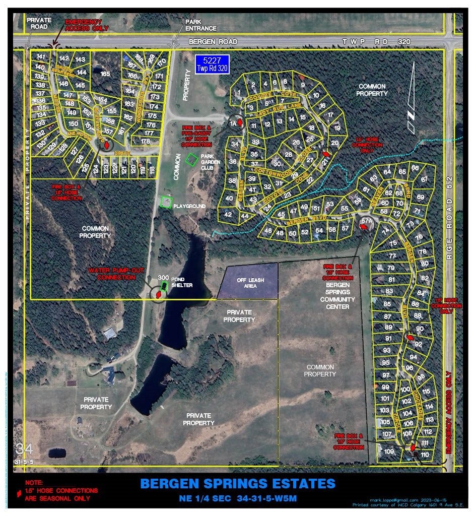 Bergen Springs Estates is a recreational community located approximately 10 minutes south of Sundre, Alberta, and about one hour northwest of Calgary (accessible via QE2 or Highway 22X). Our community offers a peaceful, family-friendly environment surrounded by nature, with year-round activities and amenities.